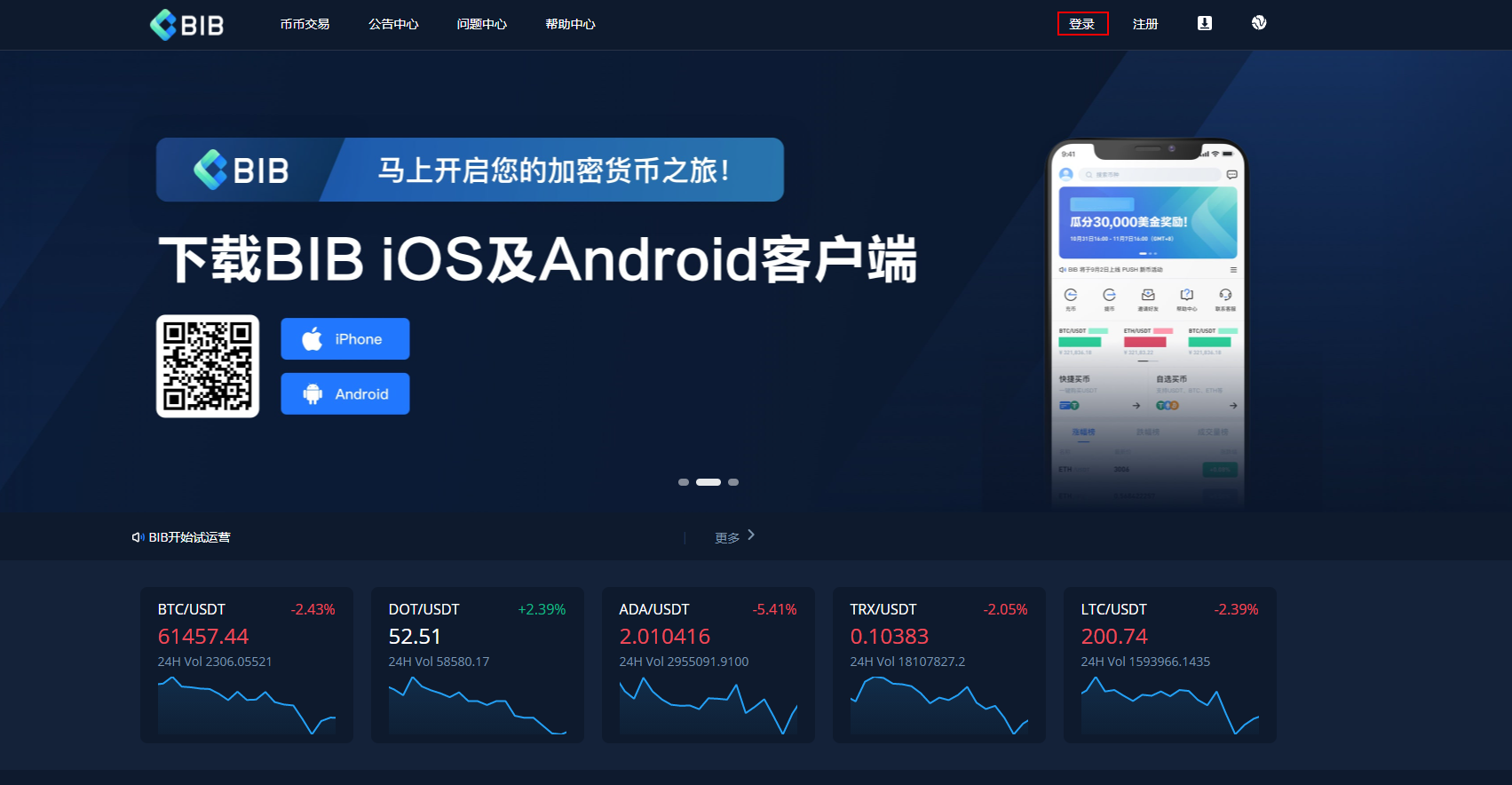 - 登录BIB官网,点击右上角的【登录】按钮。登录后,点击导航栏中的【现货交易】。