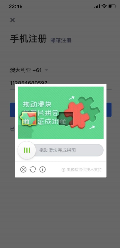 4. 点击【注册】按钮后,您的手机号将接收到来自BIB的验证码,请及时填入并点击【确认】。