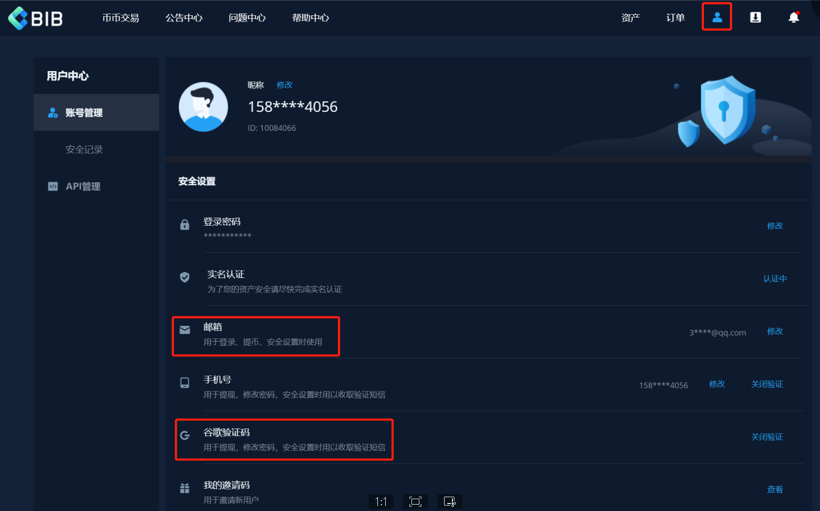 5. 输入验证码后,系统将自动跳转至BIB首页,表示注册已成功。为了账户安全,建议开启二次验证(谷歌二次验证或邮箱二次验证)。